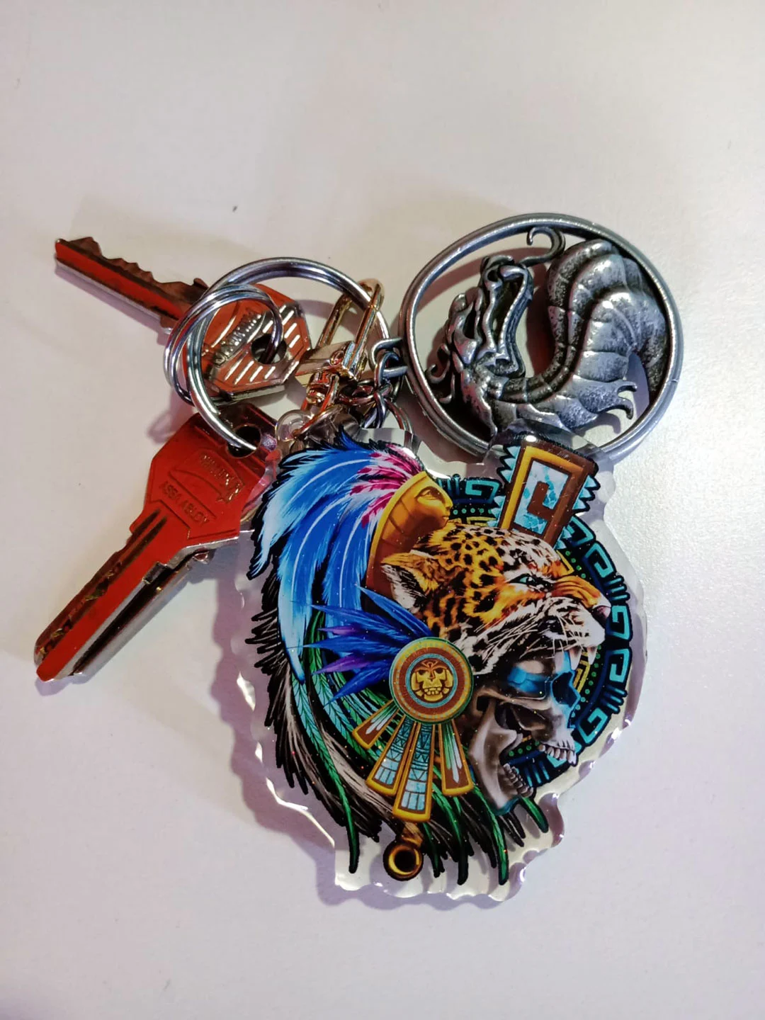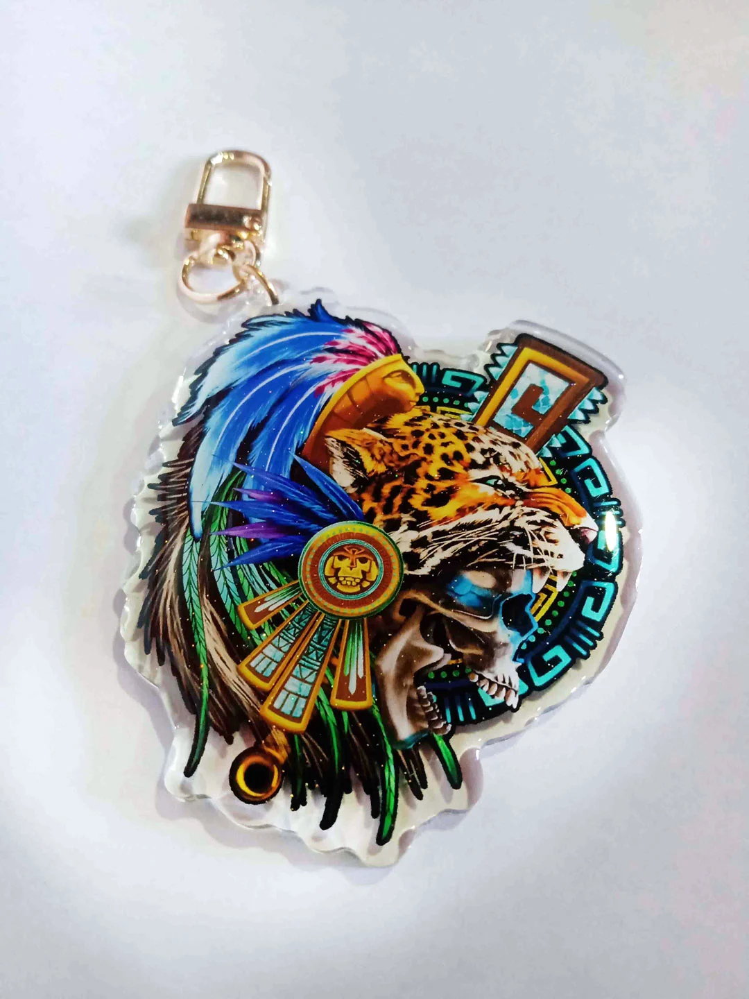 Llavero en acrílico acabado en glitter con colgante de metal