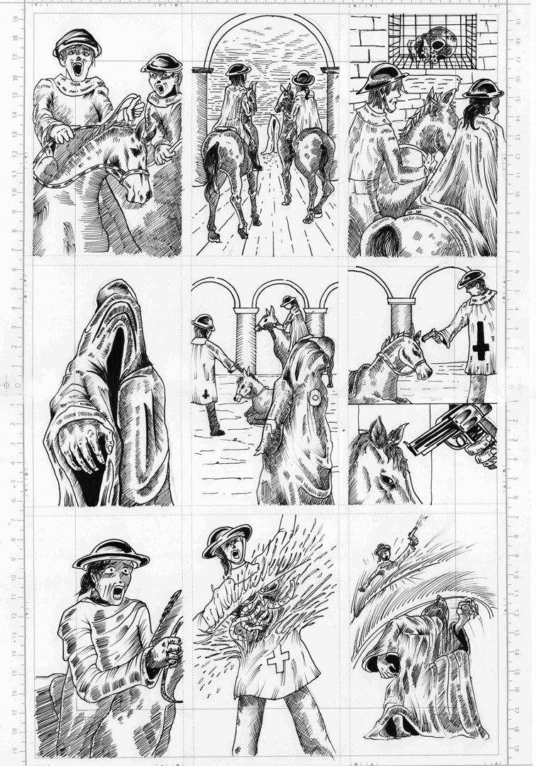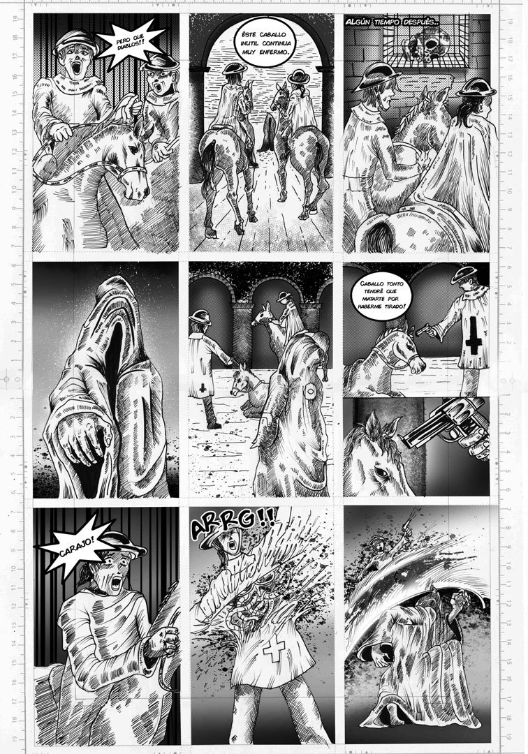 Si bien, a primera vista los paneles parecen ser bastantes gráficos y viscerales, la propuesta consistía en tratar de interpretar el maltrato de manera cruda y sin miramientos, así como mostrar la justicia que hace el personaje principal por su propia mano con la misma brutalidad, haciendo de su contenido para personas adultas, no sé si eso influyó a la hora de sortear a los ganadores el mero día del evento pero puedo decir que el resultado nos agradó bastante y nos sentimos felices de haber participado. No ganamos, pero aquí está el proceso: